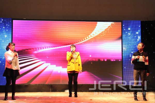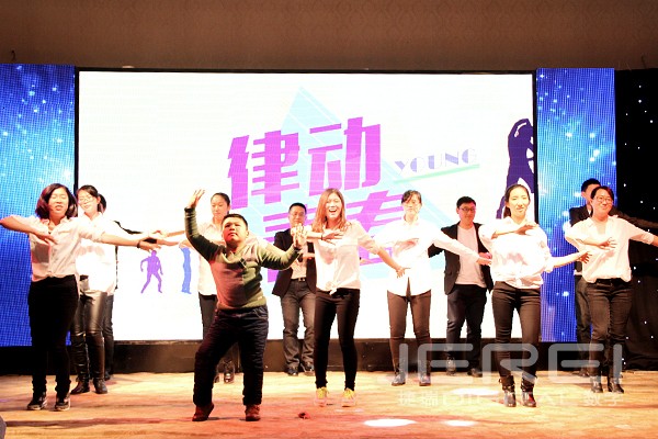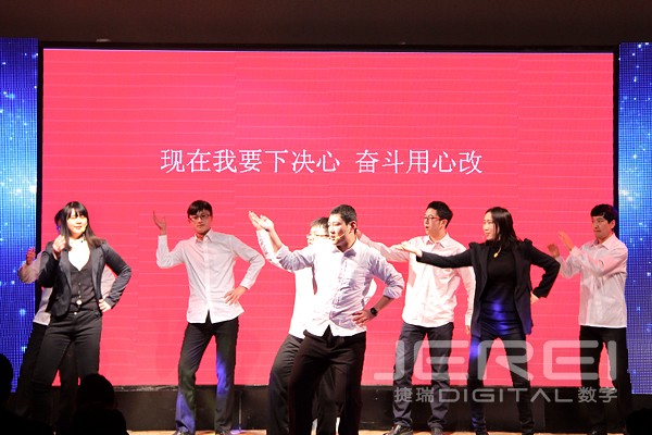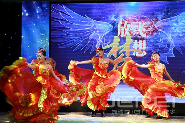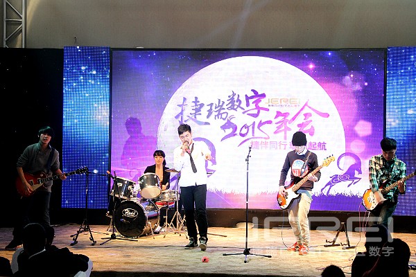 动感十足的乐队演奏、活力四射的现代舞表演,率先将现场气氛点燃,诙谐幽默的相声《我的梦想》道出了捷瑞数字人为理想而奋斗的心声;洋溢着快乐节拍的女声小合唱《中国话》、《没有什么不同》、歌曲串烧《时间的故事》、合唱《荣耀》、现代舞《火》、街舞表演《STEP UP》为联欢会增添无限活力,小品《考试作弊》、《高科技》、情景音乐剧《麻豆》、《设计那点事儿》紧密结合生活与工作,欢乐多多、笑料百出;由捷瑞数字员工原创的情景剧《舌尖上的忐忑》、诗歌朗诵《写给团队你我他》等作品充分展现了大家的创作才华和表演天分;与往年不同的是,本次年会还邀请了员工家属上台演唱,或悠扬或嘹亮的歌声,博得现场阵阵热烈掌声。两支轻舞飞扬的民族舞蹈《踏歌起舞》、《团团圆圆》之后,大家一同回顾了捷瑞数字在2014年走过的点点滴滴,在感动与不舍中,本场联欢会落下帷幕。