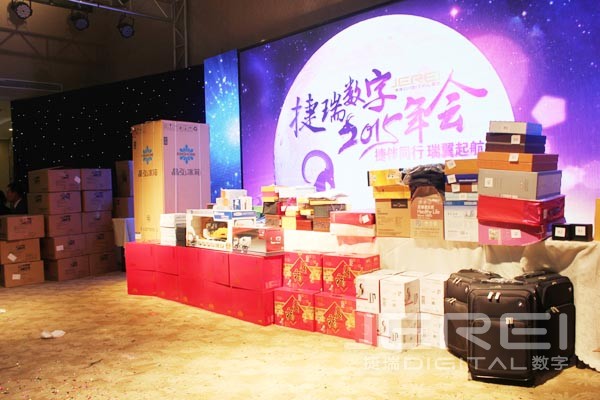 当晚6点开始,丰盛的招待晚宴与轮紧张刺激、扣人心弦的抽奖活动更是将现场气氛不断推向高潮。众所周知,捷瑞数字是IT行业的企业,拥有时下的网络技术和人才。本次年会,公司将APP技术巧妙运用到联欢会的座位排序、节目评选等各个环节。其中,通过APP客户端进行抽奖的新形式,获得在场所有人的一致称赞。值得一提的是,本次年会共有200多件奖品,中奖率接近50%,单个奖品价值高达3000元,中奖率如此之高、奖品如此丰厚,令所有同事和家属们大呼过瘾。宝马汽车、格力电器、鑫荟金行、稻香村、绿盛食品、红极参、兴盛铭仕城房产等厂家或经销商对本次年会给予倾情赞助。