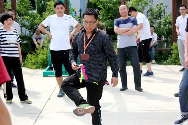 趣味踢毽子比赛中,高手们齐上阵,你一脚我一脚,考验的不仅仅是个人踢毽子功底,更在于团队的配合,看似轻松的接力,却总是一次次的失败。没关系,重头再来,默契的配合再加上败不馁的气魄,这点小困难算什么!经过角逐,横扫千军队摘得桂冠。