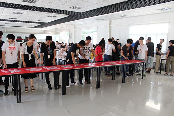 团队成员先后在条幅前按下手印并签字铭誓!