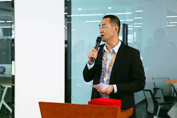 活动伊始,李腾总裁表彰了本次顺利通过中级职称评审的全体同事,对他们的努力表示了充分的肯定与认可。随后,李腾总裁宣读了通过中级职称评审的名单并颁发了证书。李总表示,捷瑞数字长期持续地重视和推动职称提升工作,强调了职称评审对于员工个人、企业核心竞争力及人力资源优化方面的重要性,鼓励公司所有同事积极参与职称评审。