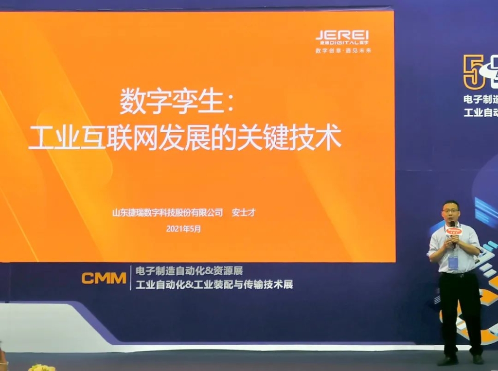 2021年5月19日,捷瑞数字携伏锂码云平台亮相2021年第五届CMM电子制造自动化&资源展及同期由橙色云主办的“数字化工厂与互联网设计创新论坛”,探讨工业互联网发展的关键技术——数字孪生。