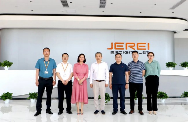 2022年6月2日,瑞康医药集团股份有限公司董事长韩旭、战略市场部总经理马乐伟等领导一行莅临捷瑞数字参观调研,捷瑞数字总裁牟文青陪同参观了公司数字中心,双方就伏锂码云平台在企业数字化转型中的应用开展了座谈会晤。