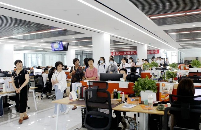 参观完数字中心,同学们又来到了捷瑞数字办公区,看着忙碌的企业工作人员,同学们不禁放轻了脚步,安静地参观学习,沉浸式体验了捷瑞数字的职场生活。随后进行了亲切座谈,通过捷瑞数字员工代表的海外留学经验分享、个人职业生涯发展规划和人格测试互动等环节,同学们更好地了解了当前的就业形势,增强了职业规划意识,开阔了国际化视野,现场气氛热烈而活跃。