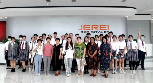 2022年7月6日上午,烟台一中国际部师生到访捷瑞数字参观学习,捷瑞数字总裁牟文青等热情接待并陪同参观,进行了热烈而友好的交流互动。