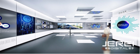 在数字智慧展厅的建设过程中,捷瑞数字充分利用了最新的数字技术和多媒体手段。例如,运用虚拟现实技术打造沉浸式体验场景;利用大数据分析技术实现智能导览和个性化推荐;通过互动投影、触摸屏等多媒体设备增强参观者的参与感和体验感。这些技术的应用不仅提升了展厅的展示效果,也为参观者带来了前所未有的互动体验。